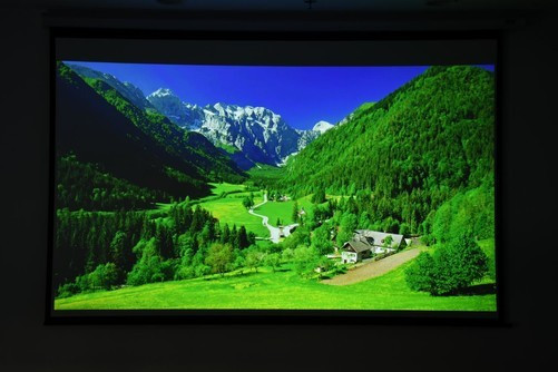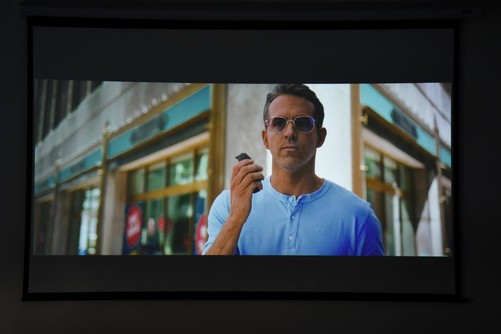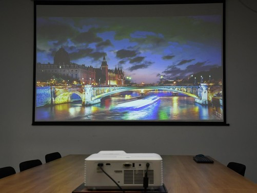 实际测试中,我们在30㎡的明亮会议室中投射120英寸画面,播放PPT课件时,小字号的内容、复杂的图表线条全屏都清晰可辨,没有出现泛白或边缘模糊现象。