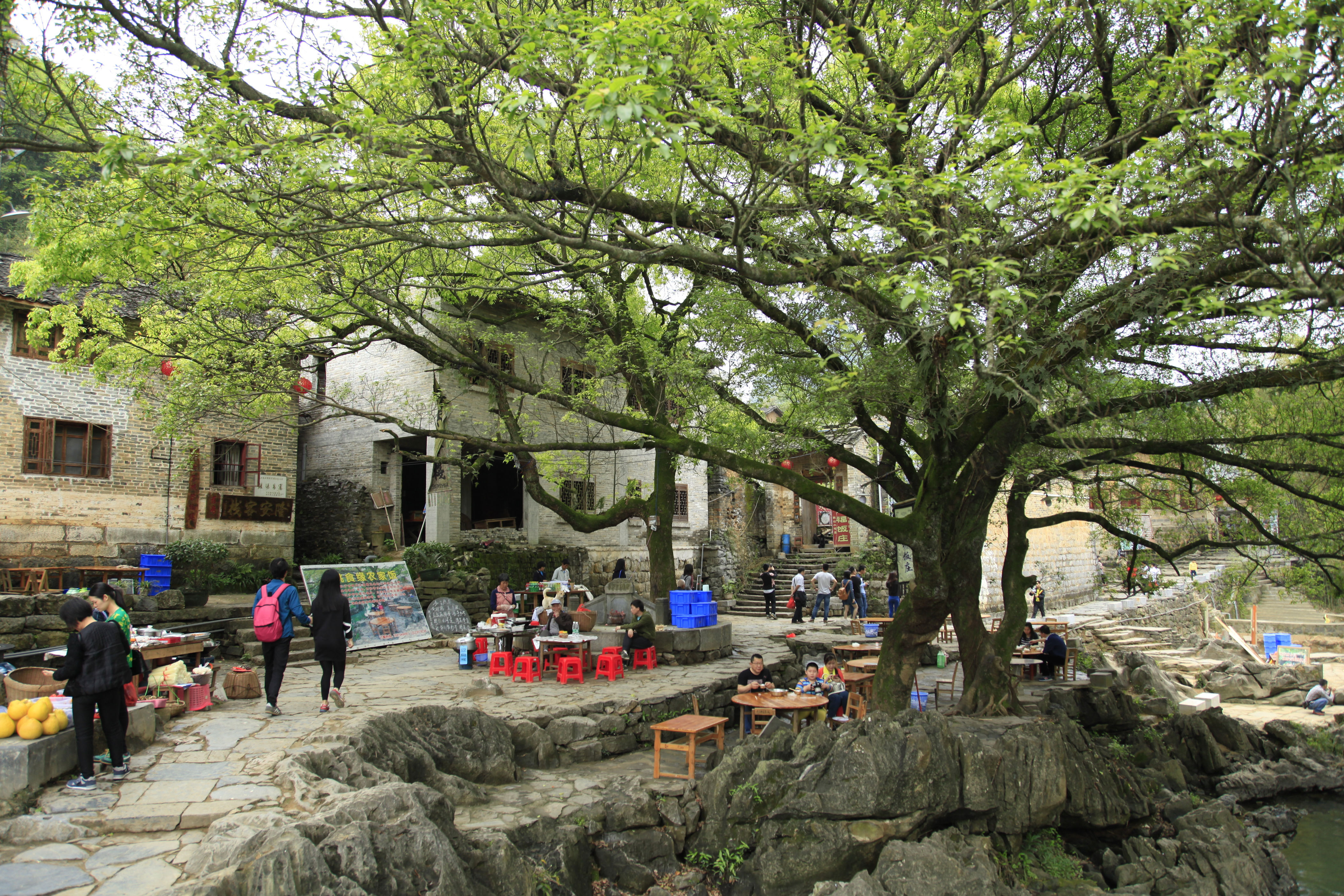 宁静古朴的黄姚古镇,有着上千年的历史,也是广西最美古镇之一,深藏喀斯特峰林之中,如今仍保留着古桥、古宅、古榕树等,有一种原始古镇的秀美,漫步在古镇的青石板街道上,清澈的小溪穿桥而过,感受慢节奏生活。