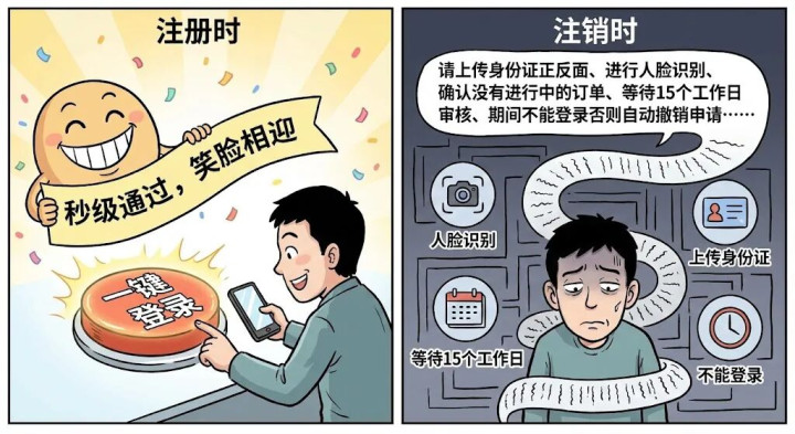 把注销门槛设得像取经一样难,平台的“用户留存数”就不会掉得太难看。